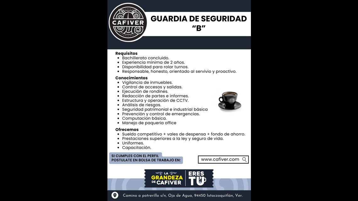 Guardia de Seguridad B - Cafiver Ixtaczoquitlán